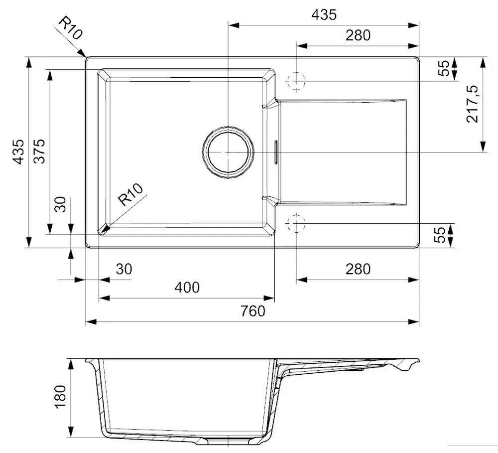 Materia primă: piatră artificială / Suprafaţă: piatră artificială / Numărul de vase: 1 / Gaura pentru robinet: da