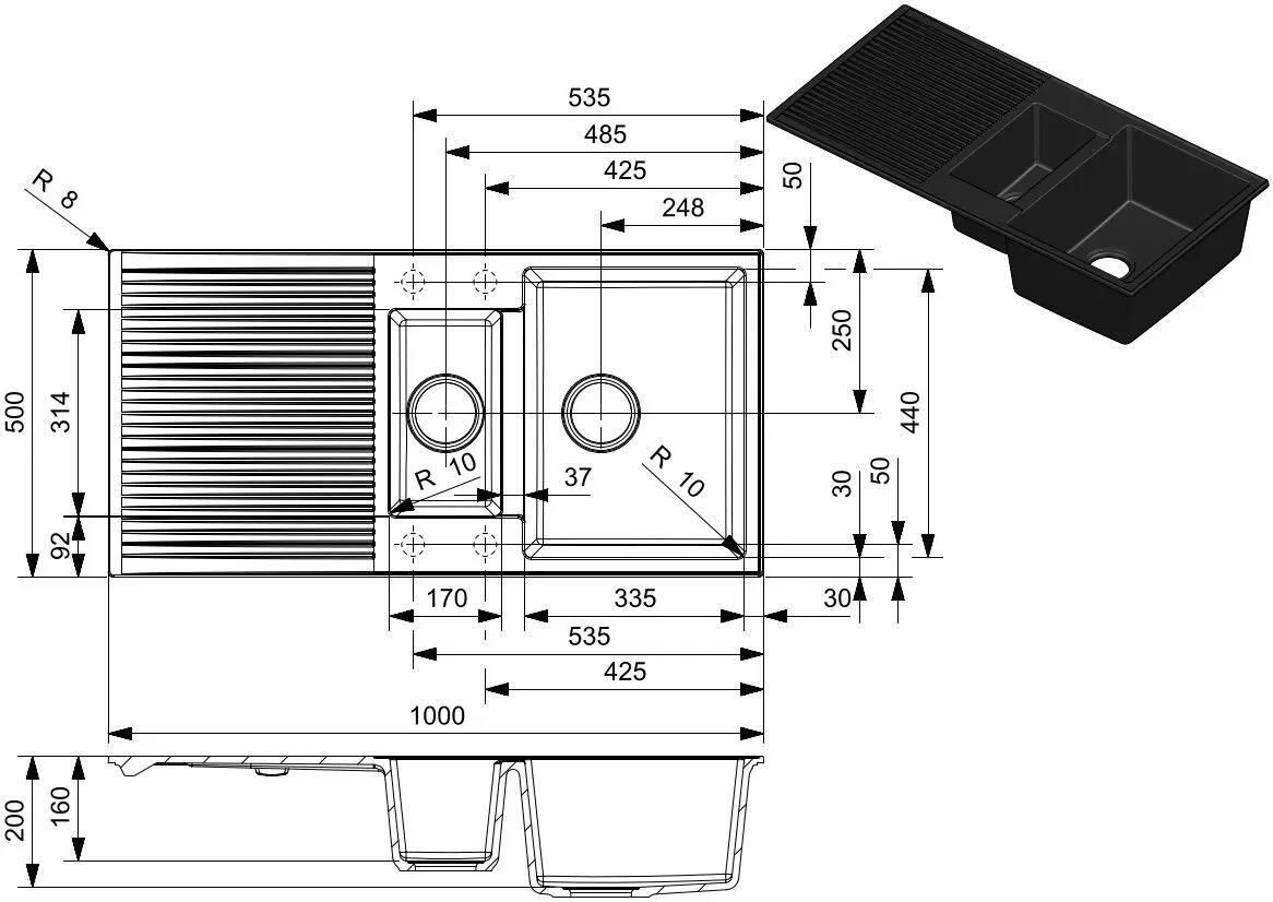 Suprafaţă: granit / Structura de suprafaţă: mat / Numărul de vase: 1 / Locul de amplasare capete: din dreapta