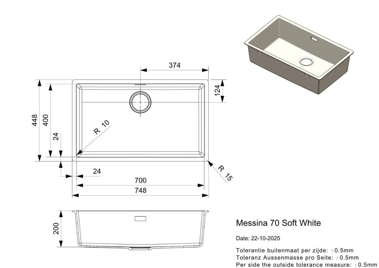 - Dimensiunile chiuvetei, cm 20x70x40