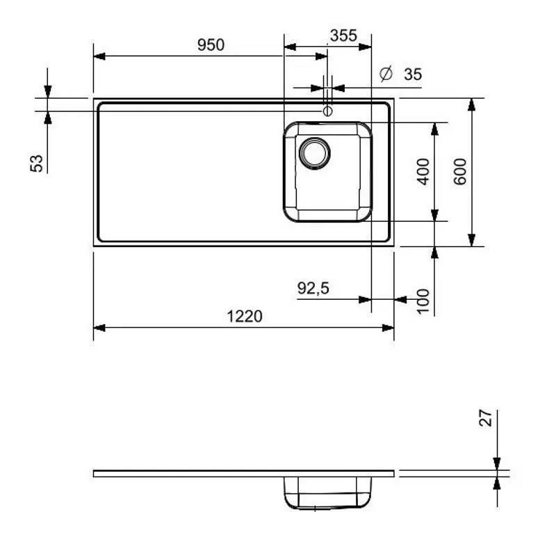 - Dimensiunile chiuvetei, cm 122x40