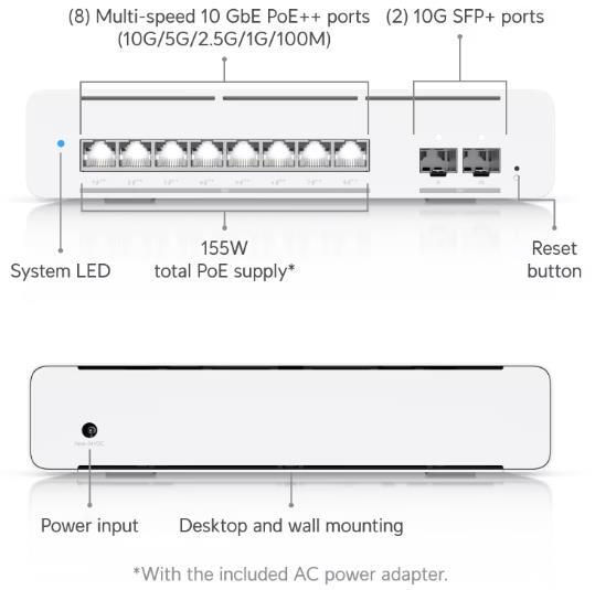 Viteza maximala LAN, Mbit/s: 10000 / Cantitatea de porturi LAN, buc.: 8 / Alimentare Poe: da / Tip alimentare: rețea