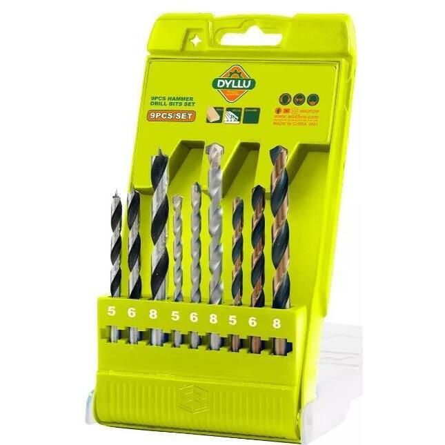 Tip: set de burghie / Număr de subiecți, buc.: 9 / Tip bază: cilindric / Material: oțel