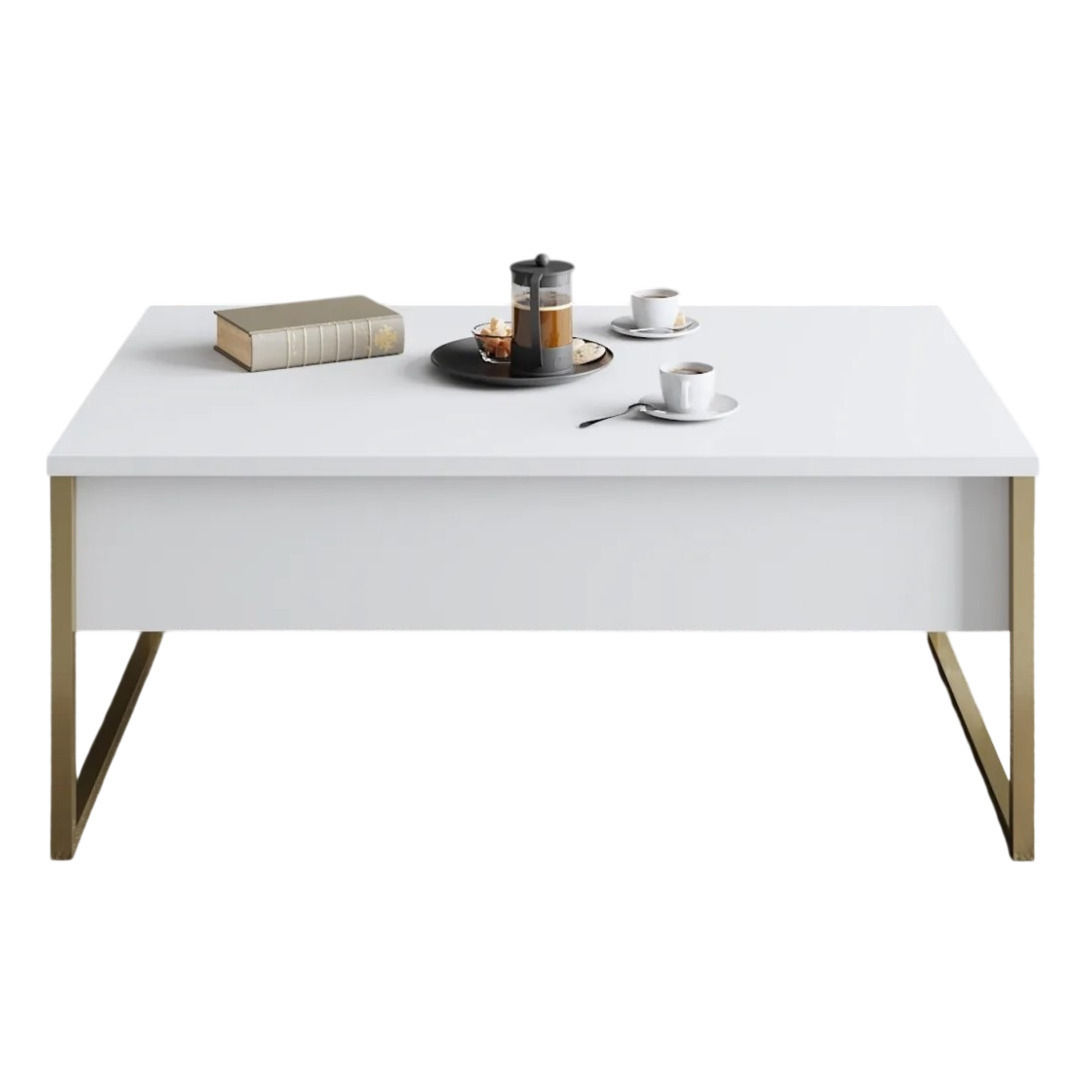 Măsuţă cafea Trendy Lux, alb, auriu 90x40x60cm