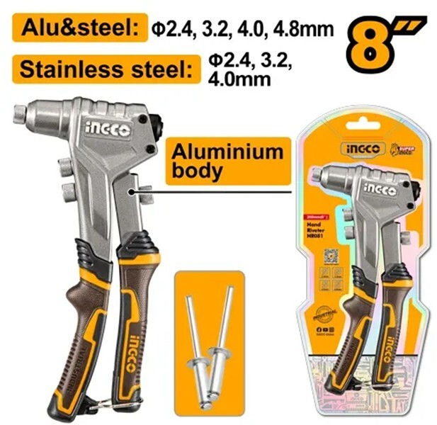 Tip: clești de nituire / Diametru nituri, mm: 2,4;3,0;3,2;4,0;4,8 / Material nituri: aluminiu;oțel inoxidabil;oțel / Brand: Tolsen