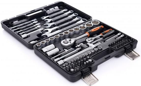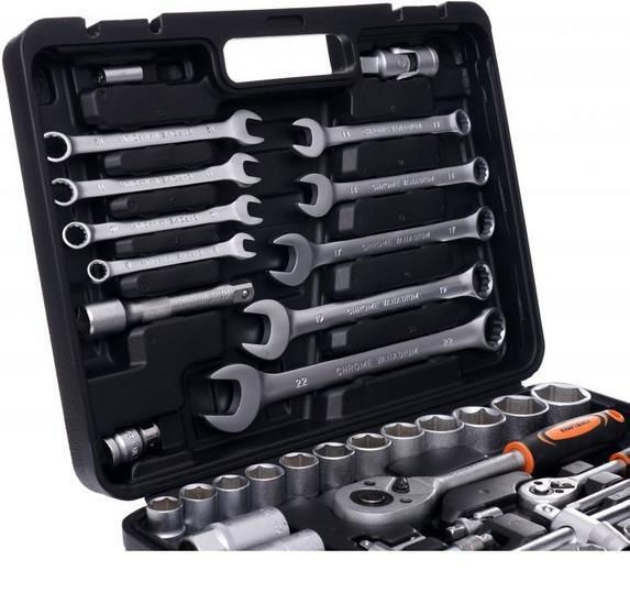Tip: set de cheie tubulare / Material: oțel CrV / Număr de subiecți, buc.: 65 / Instrument: cheie tubulară;șurubelniță;clichet