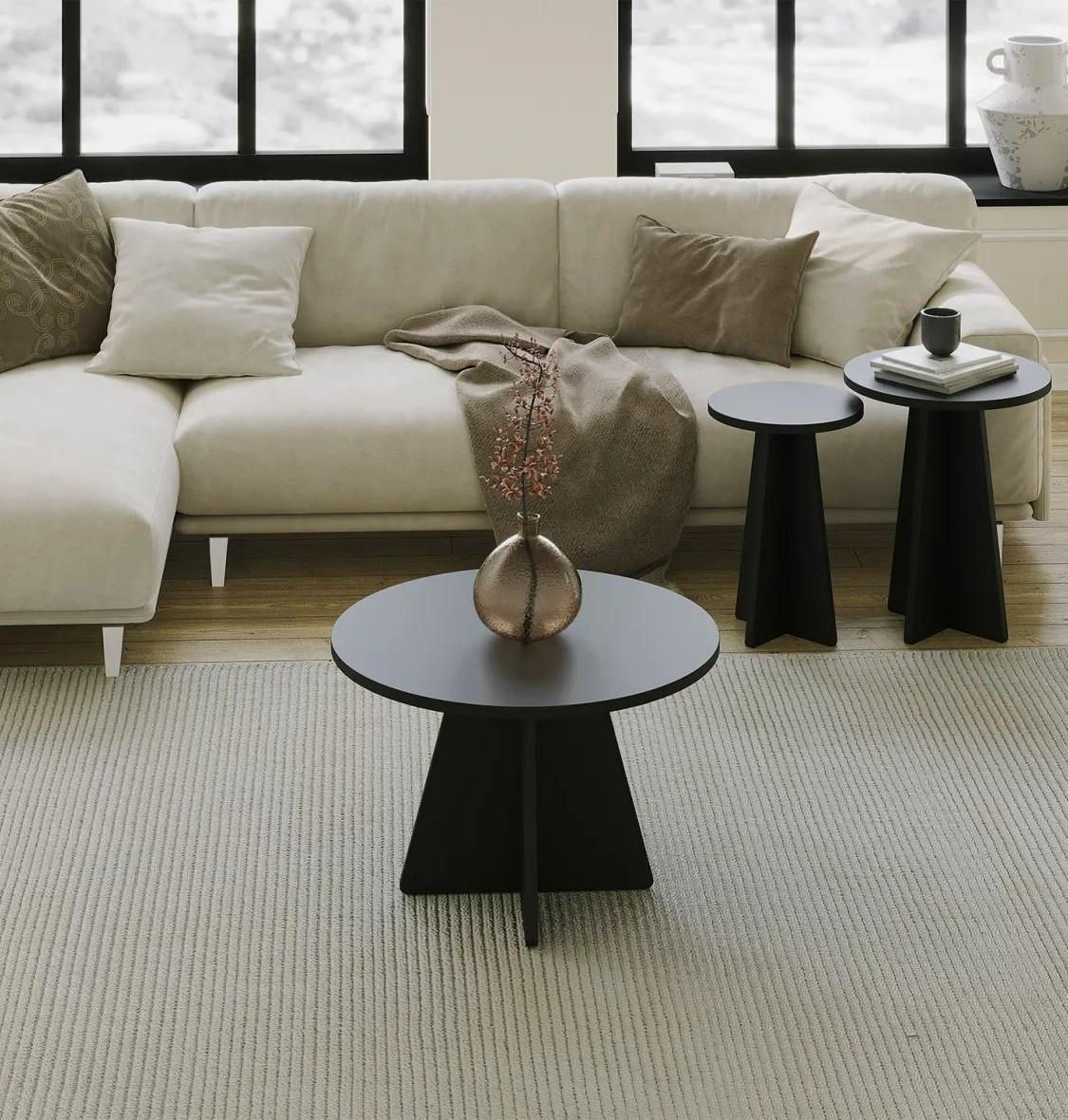 Măsuţă cafea Trendy Ciuperca 3, Negru, set