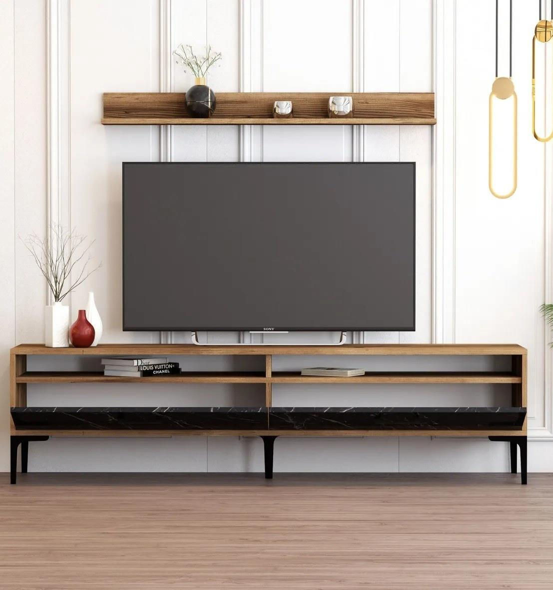 Având o combinație uimitoare de culori nuc și negru, unitatea noastră tv adaugă o notă de eleganță oricărei camere de zi. Designul elegant și combinația de culori moderne o fac să se potrivească perfect pentru orice stil de decorare a casei.