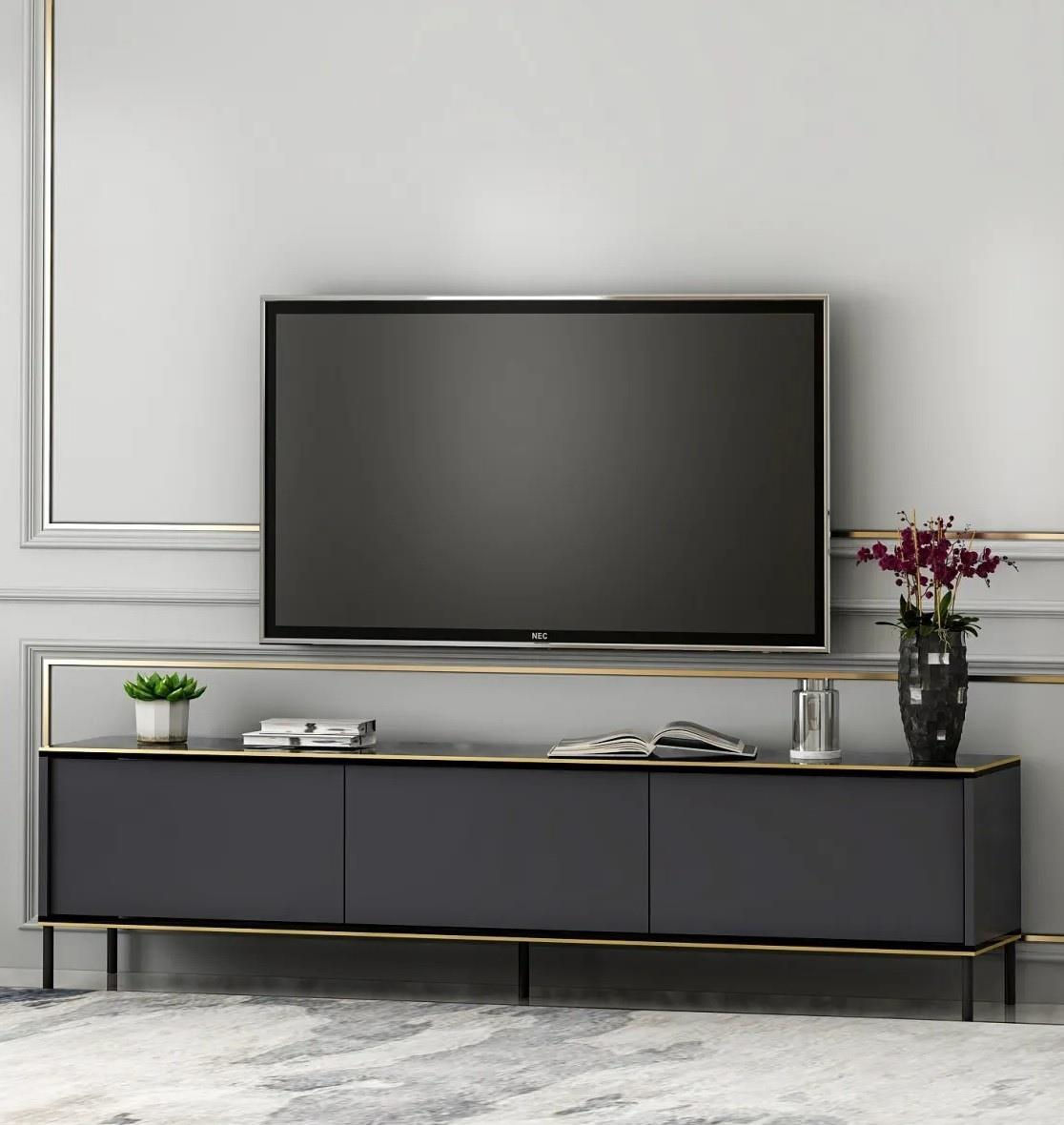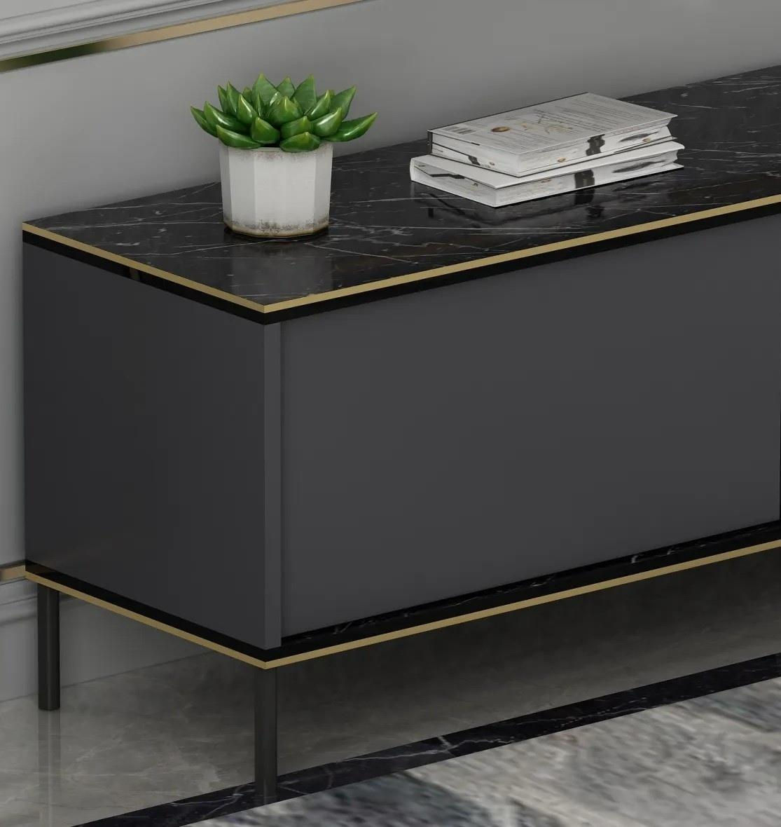 Fabricat din plăci aglomerate acoperite 100% cu melamină, suportul nostru TV se mândrește cu o durabilitate și longevitate excepționale. Grosimea de 18 mm asigură robustețea, permițându-i să reziste la testul timpului. Culoarea elegantă de antracit adaugă o notă de rafinament, îmbinându-se fără efort cu orice decor interior.