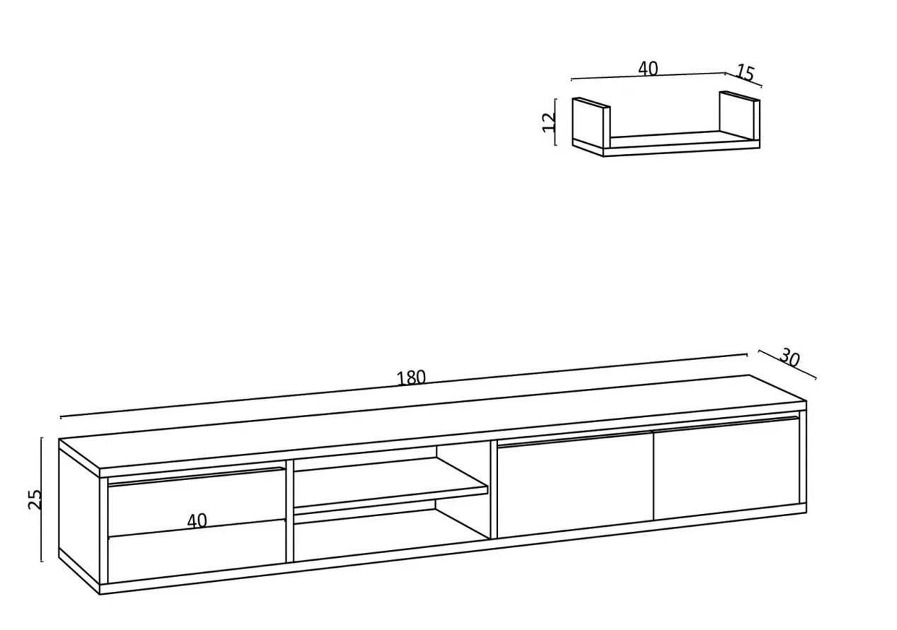Destinat: suport TV / Înălţime, mm: 250 / Lăţime, mm: 1800 / Adâncime, mm: 300