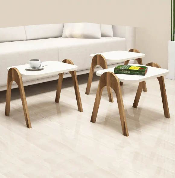 Măsuţă cafea Trendy Paris, Nuc, Crem 48x42x35cm, masa de cuibarit (3 bucati)