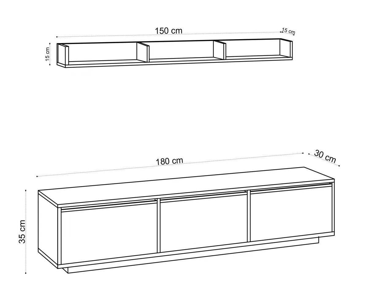 Destinat: suport TV / Înălţime, mm: 350 / Lăţime, mm: 1800 / Adâncime, mm: 300