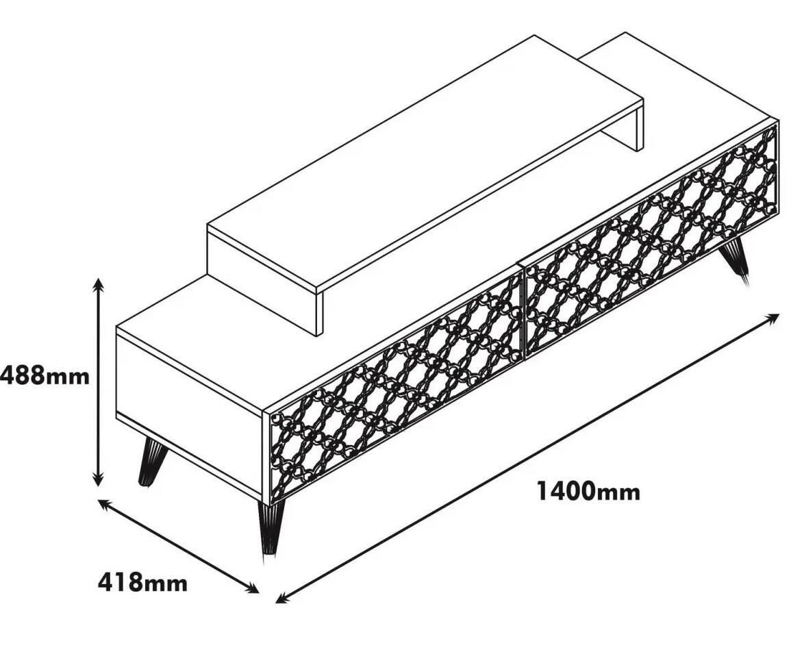 Destinat: suport TV / Înălţime, mm: 488 / Lăţime, mm: 1400 / Adâncime, mm: 418