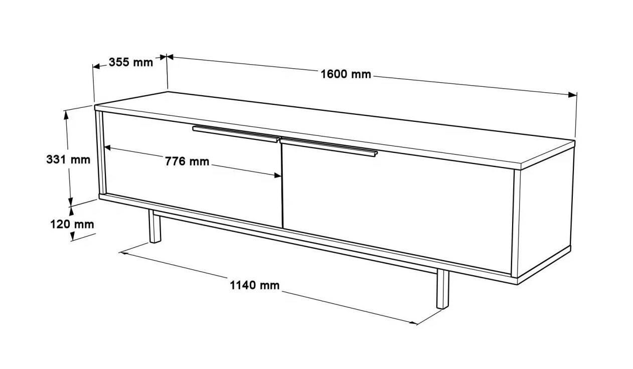 Destinat: suport TV / Înălţime, mm: 331 / Lăţime, mm: 1600 / Adâncime, mm: 355