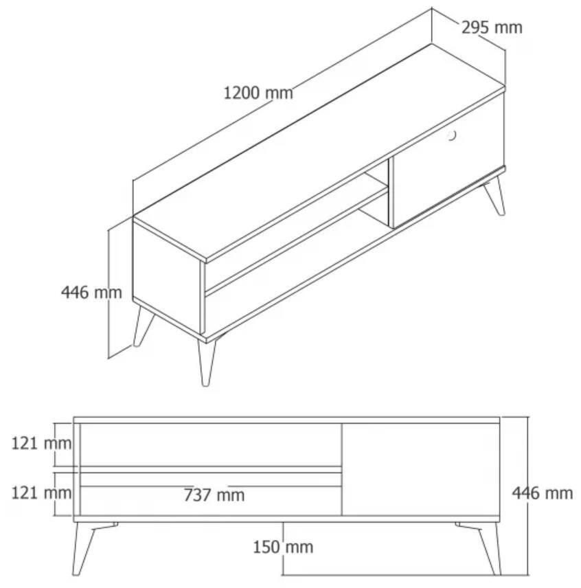 Destinat: suport TV / Înălţime, mm: 446 / Lăţime, mm: 1200 / Adâncime, mm: 295