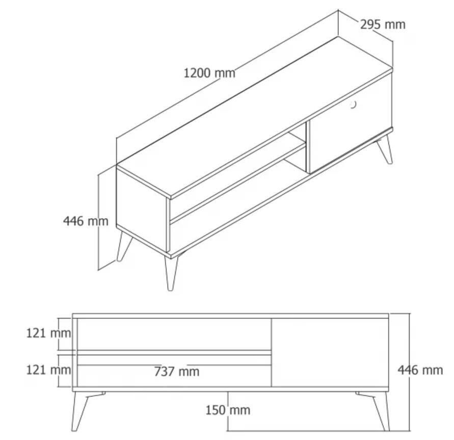 Destinat: suport TV / Înălţime, mm: 446 / Lăţime, mm: 1200 / Adâncime, mm: 295