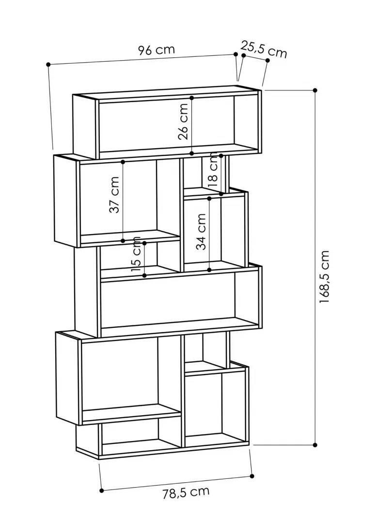 Tip: etajeră / Înălţime, cm: 168,5 / Lăţime, cm: 96 / Adâncime, cm: 25,5