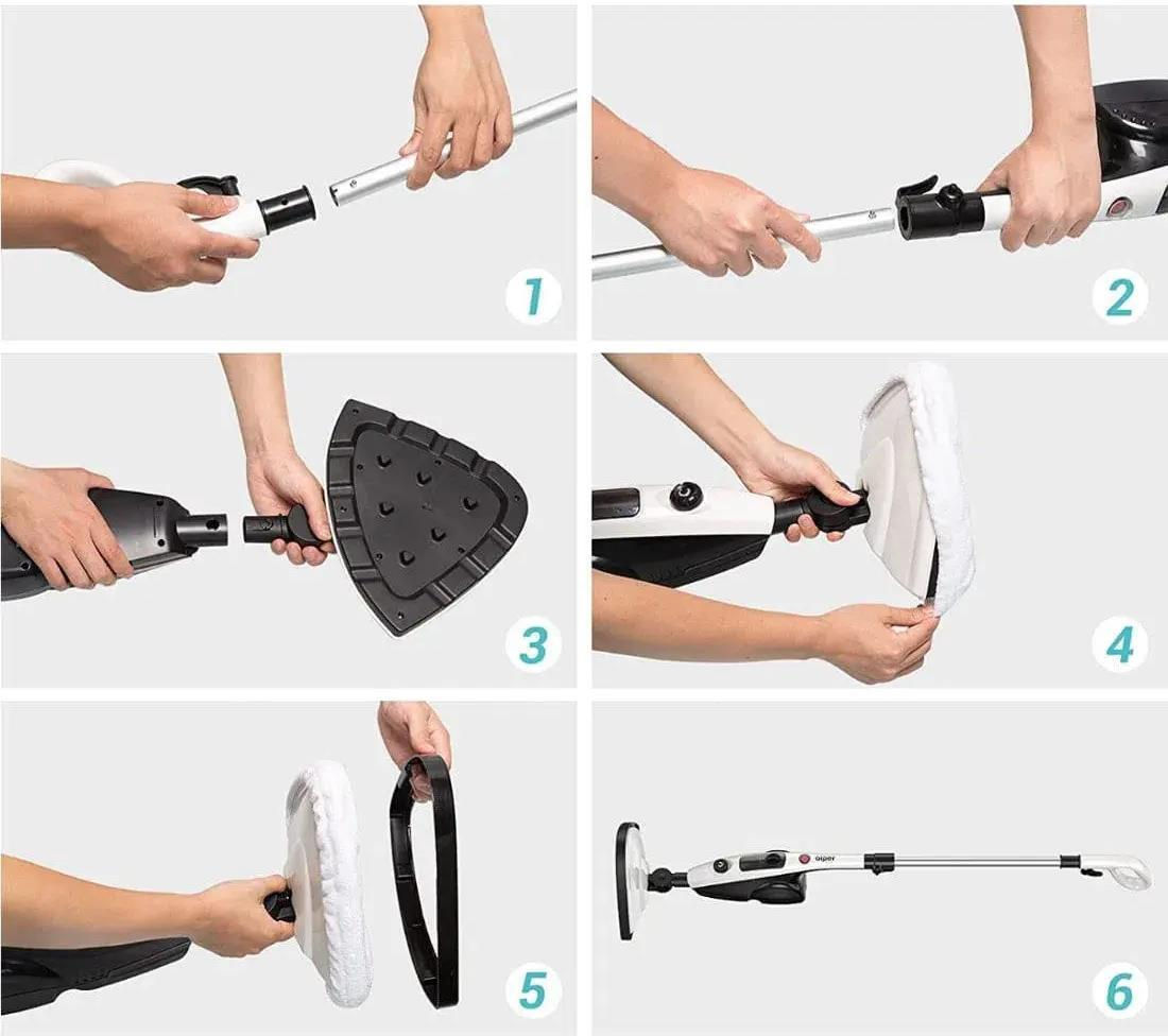 Accesorii incluse - pahar de măsurare,curățator geamuri,perie rotundă mică din silicon, perie rotundă mare din silicon, perie subțire din silicon,rezervor pentru resturi, duză îndoită, duză cu jet, laveta din microfibră si rola îmbrăcăminte,covor planor