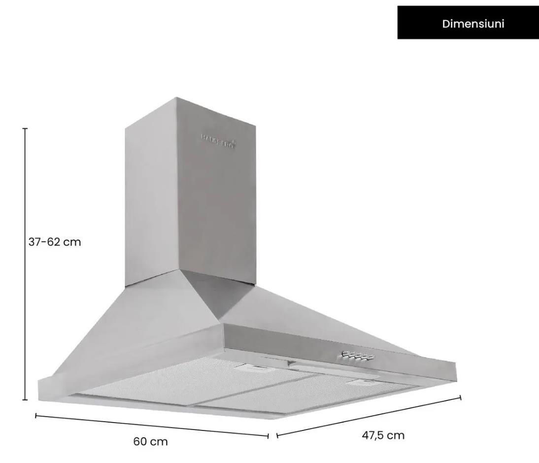 Tip: ne incorporabil / Form factor: camin (forma T) / Moduri de operare: evacuare / Număr de motoare: 1