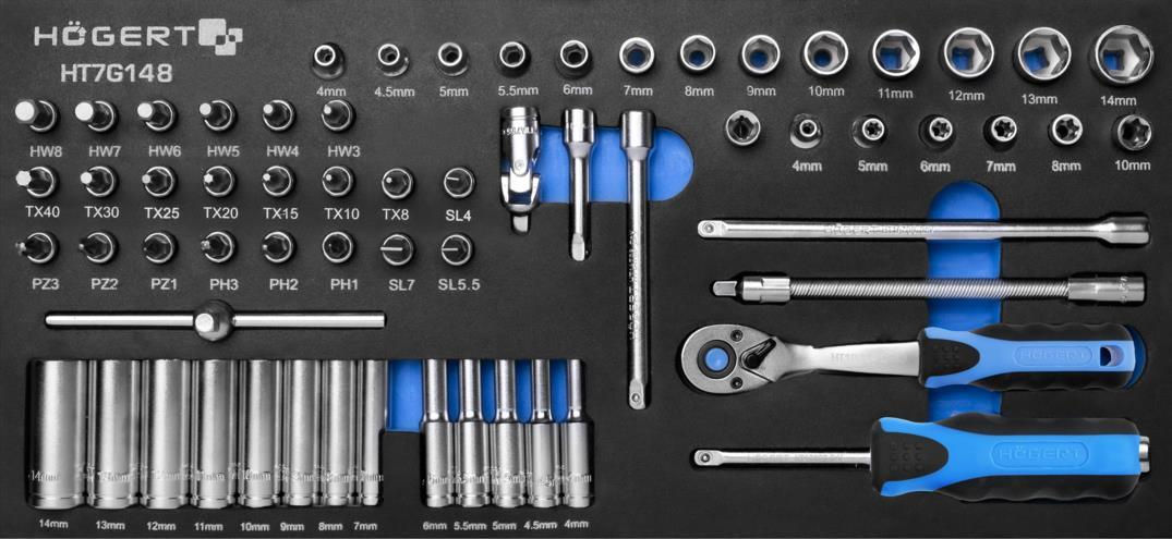 - Model HT7G058 Carucior de scule cu 7 sertare, 252 de scule
