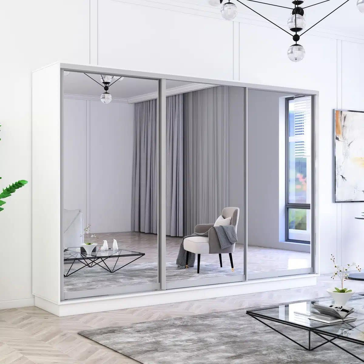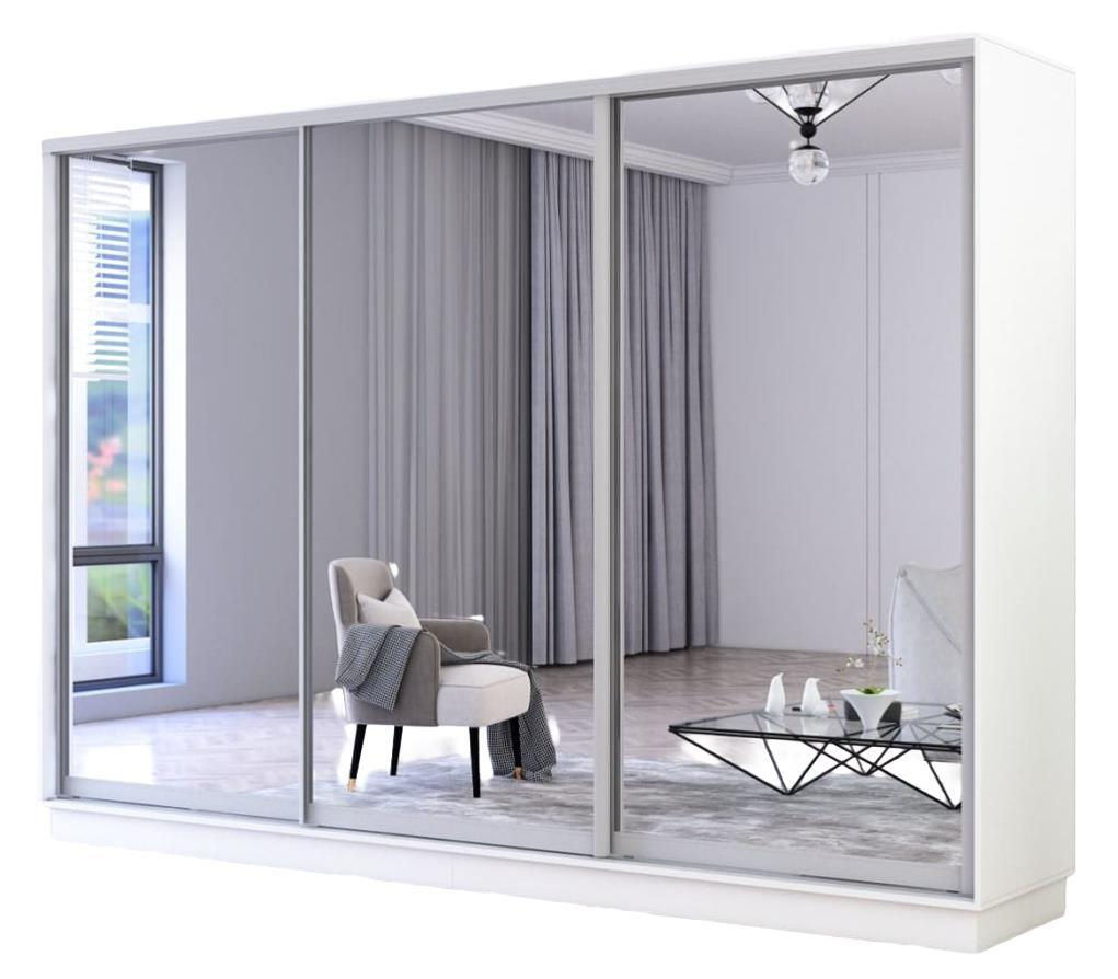 Dulap Mobildor-Lux Fox uși glisante din oglinzi (310x60x220H cm) Alb