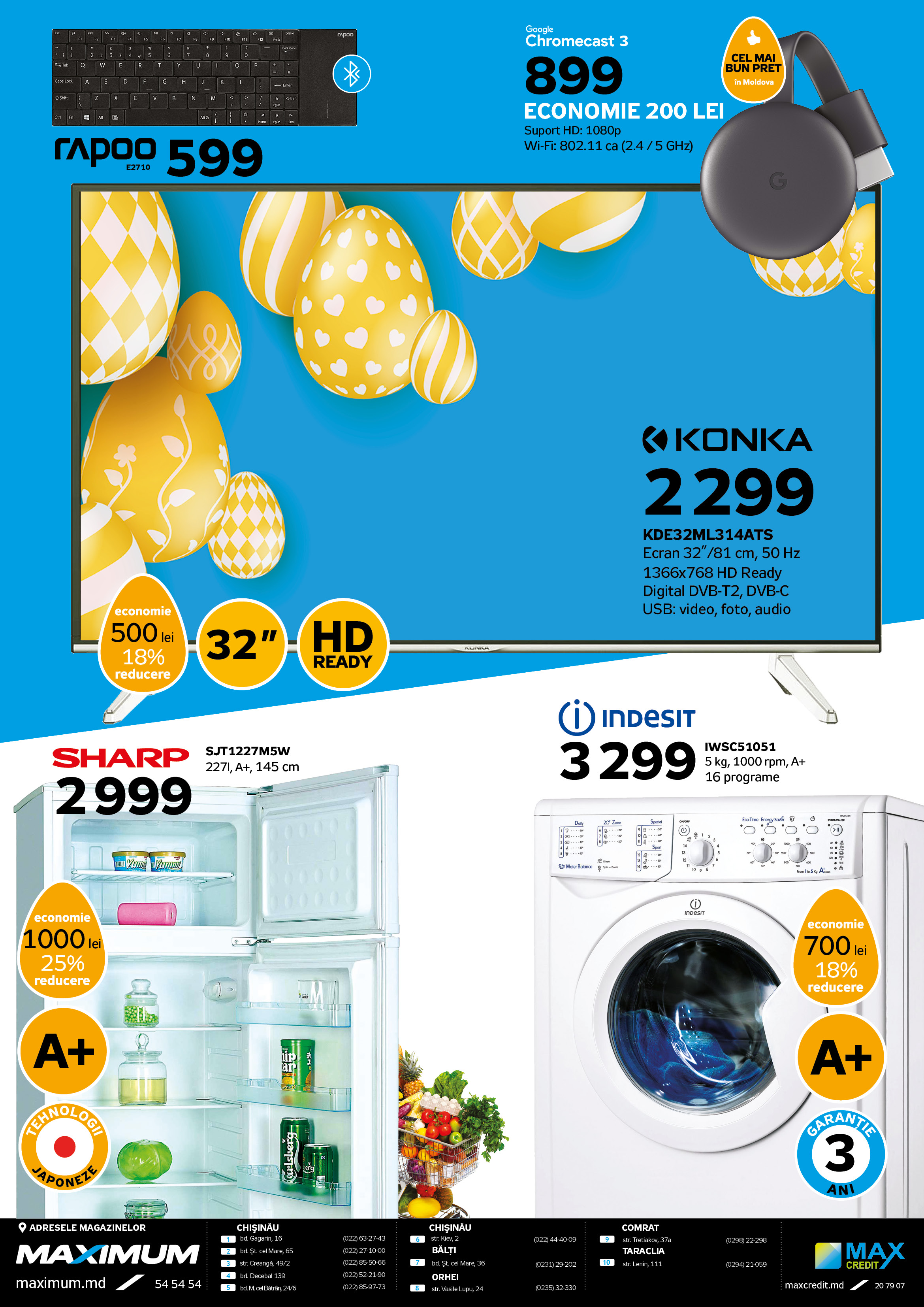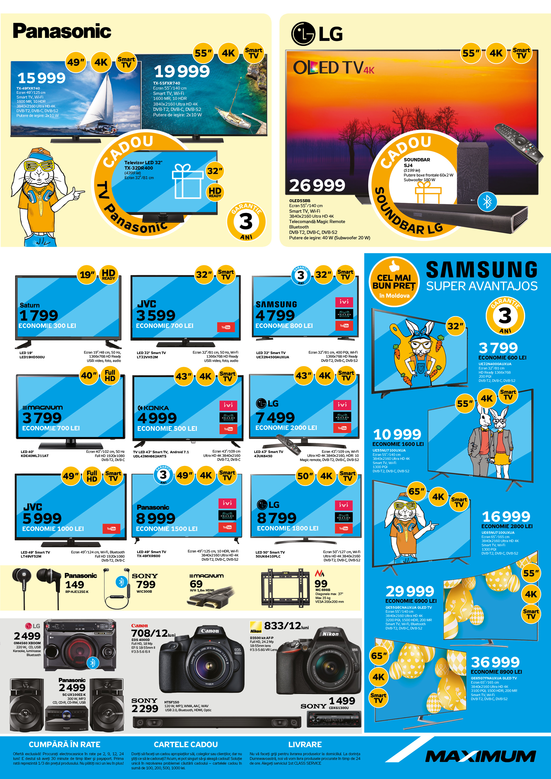Echipa MAXIMUM a creat o culegere din cele mai solicitate mărfuri pentru luna următoare. Tehnică de bucătărie pentru pregătirea bucatelor delicioase de Paști, tehnică mare de uz casnic pentru menținerea curățeniei în casă, tehnică televizată pentru o dispoziție excelentă, tehnică IT pentru muncă, studii și distracții... și multe altele. Întâmpină cele mai bune prețuri din aprilie ale noastre!