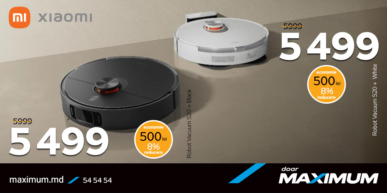 Xiaomi Robot Vacuum S20 — un robot accesibil, dar performant. Funcționează silențios, se orientează ușor în spațiu, creează o hartă a locuinței și nu doar aspiră, ci și spală podelele. Acum — la doar 2999 de lei, disponibil în două culori: negru și alb.