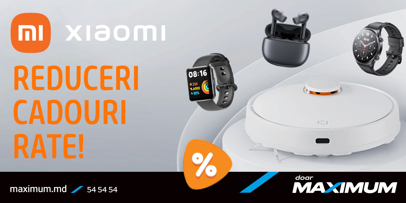 Xiaomi bucură din nou! La început de primăvară — ai mai multe motive să-ți reînnoiești tehnica: reduceri mari, cadouri grozave și rate pe 10 luni fără dobândă. Promoția include televizoare, aspiratoare, brățări fitness, căști, proiectoare, ceasuri smart și chiar periuțe de dinți electrice. Dacă de mult timp urmăreai produsele Xiaomi — acum e momentul perfect să cumperi de la Maximum.