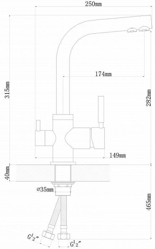 Тип: однорычажный / Назначение: кухонный / Материал корпуса: нержавеющая сталь