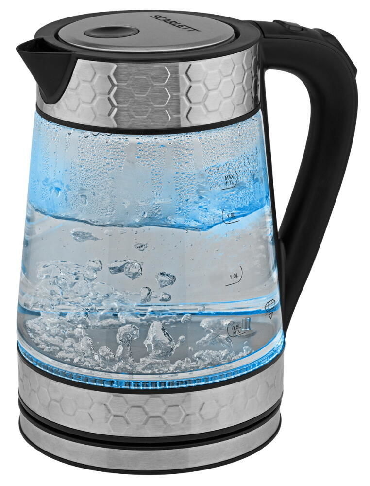 Объём, л: 1 / Материал корпуса: стекло / Макс. потребляемая мощность, Вт: 2200 / Нагревательный элемент: скрытая спираль