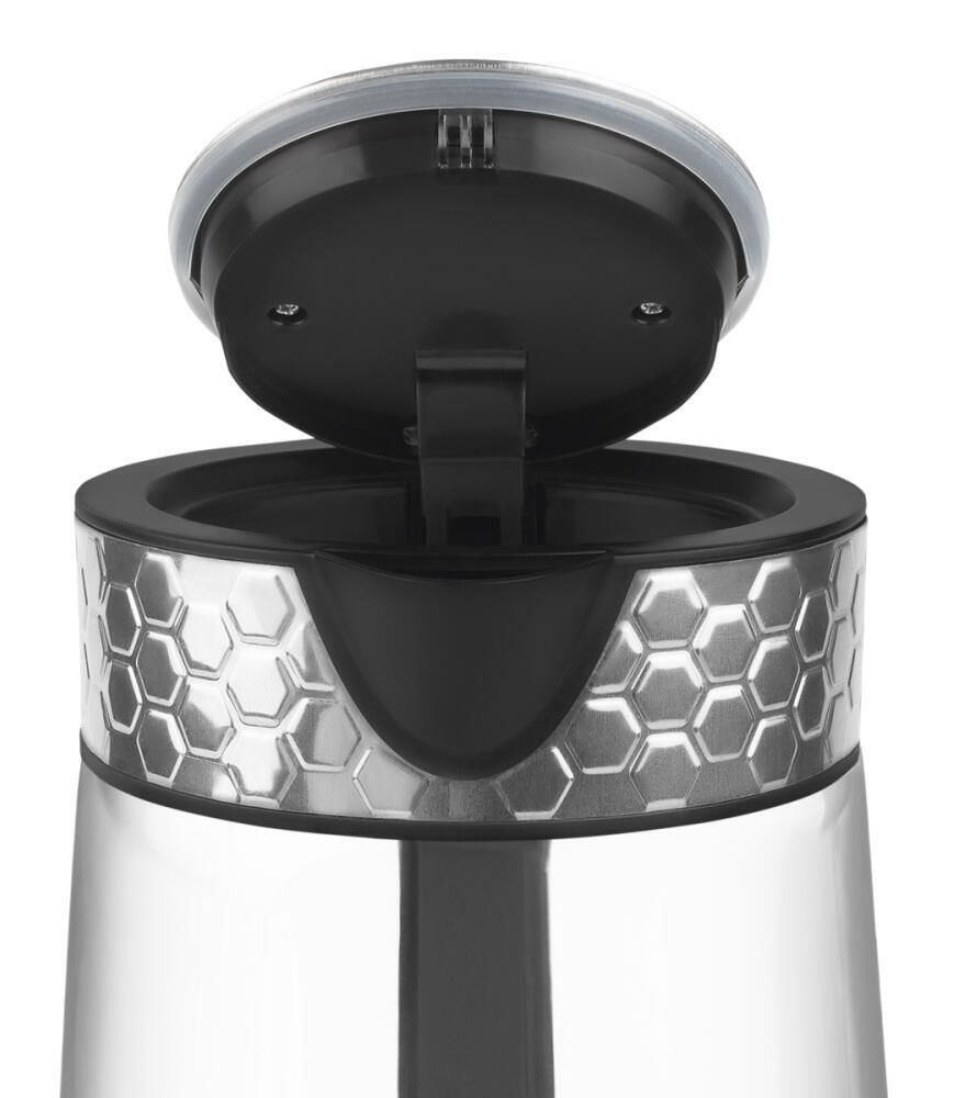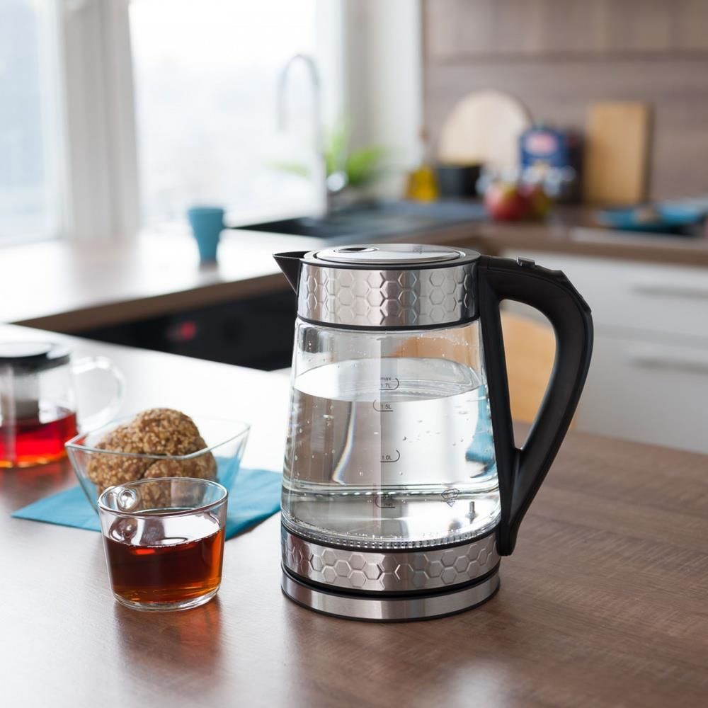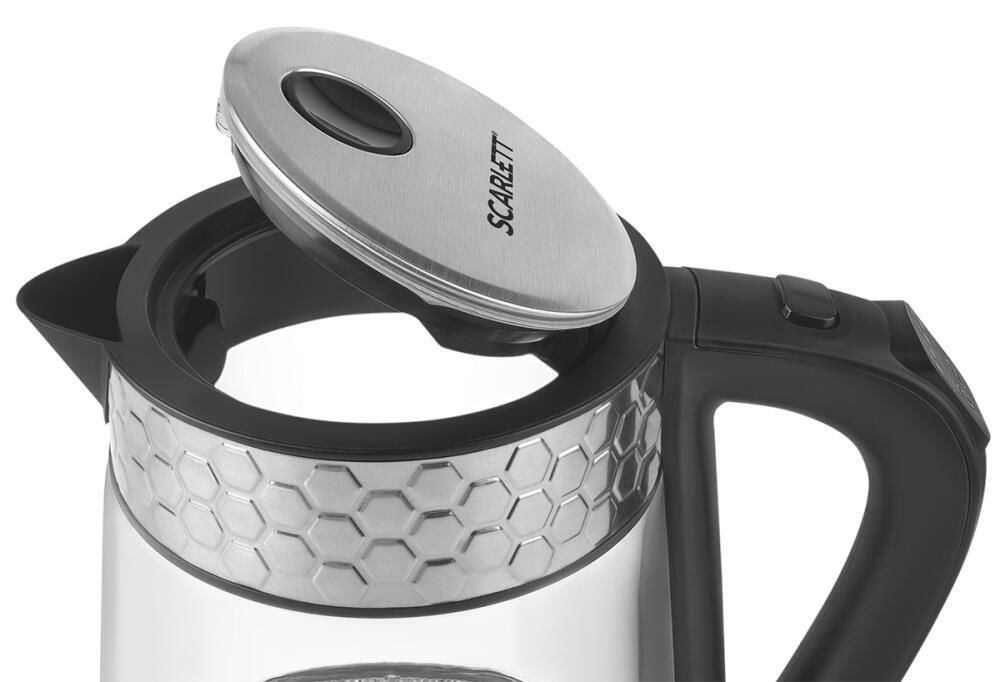 Объём, л: 1,7 / Материал корпуса: стекло / металл / Макс. потребляемая мощность, Вт: 2200 / Нагревательный элемент: скрытая спираль