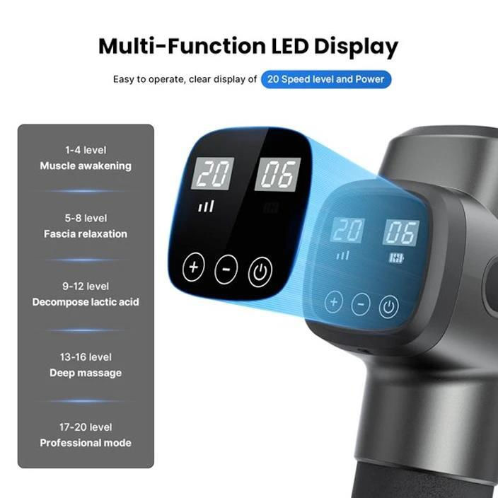Форм-фактор: пистолет / Предназначен: для тела (универсальный) / Вид массажа: вибрационный;перкуссионный;шиацу / Количество режимов: 3