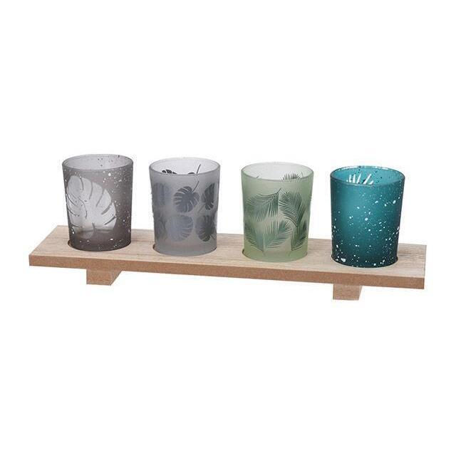 - Model 44617 Подсвечники стеклянные 4шт, подставка дерево на ножках