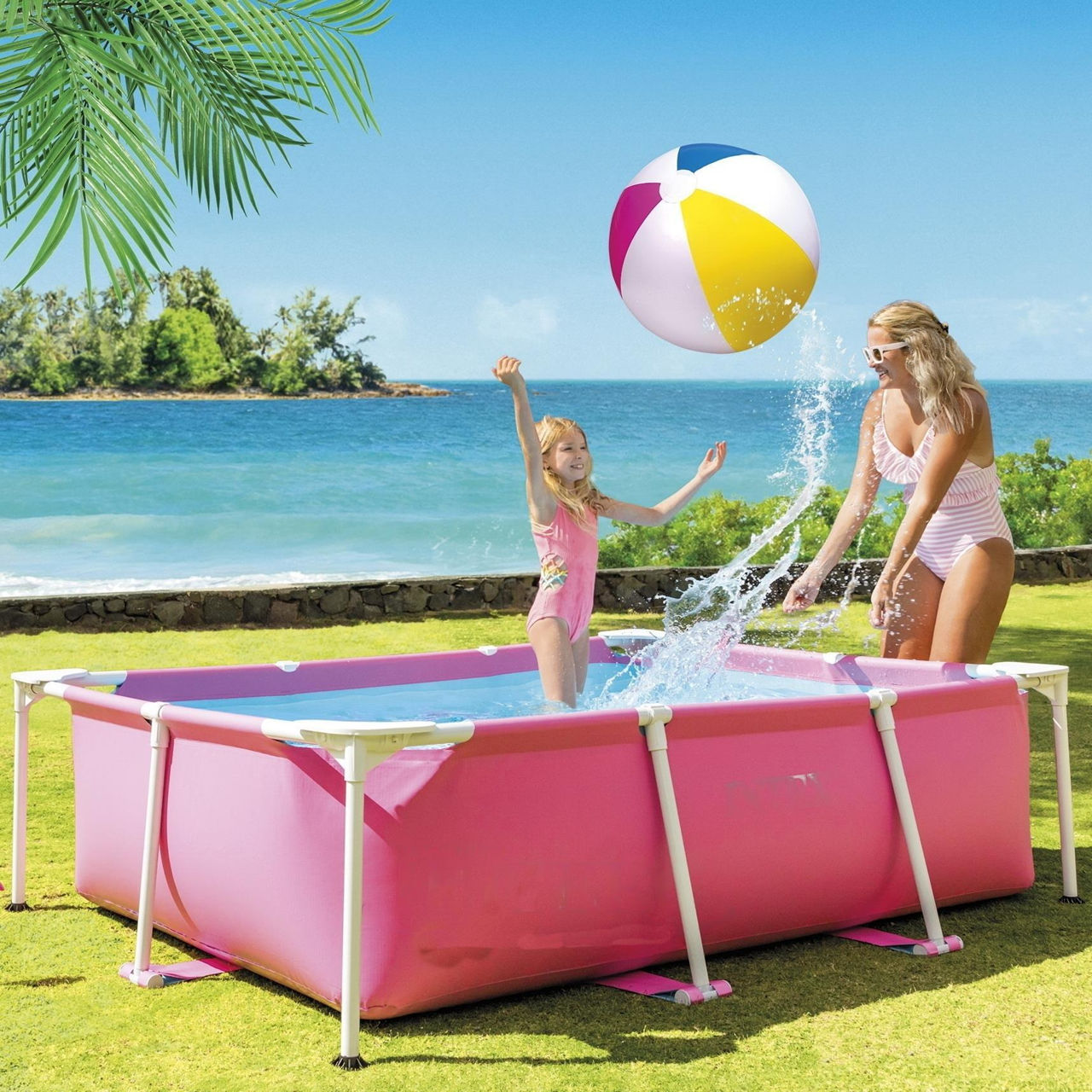 - Модель 28266 RECTANGULAR FRAME 220х150х60сm, 1622L, cadru metalic, roz