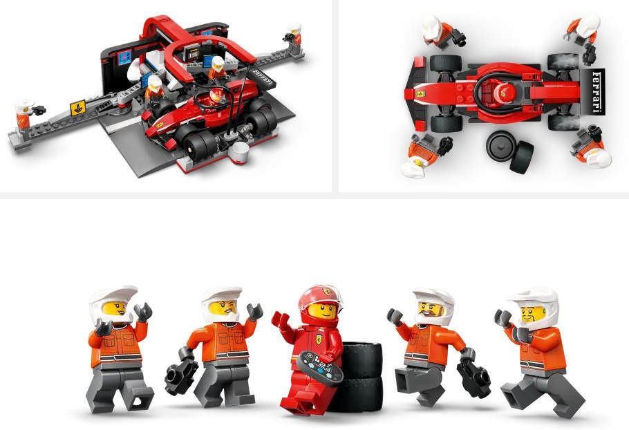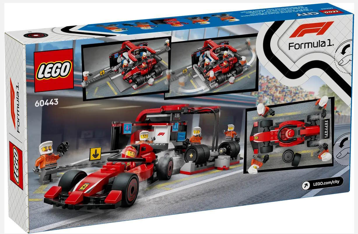 - Модель 60443 City F1 Pit Stop și echipa Pit Stop cu mașina Ferrari