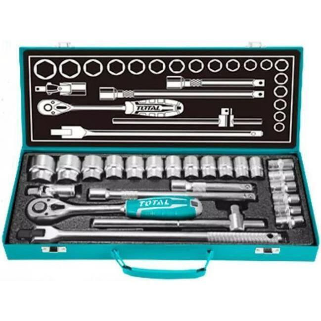 Тип: набор торцевых головок с трещоткой / Материал: сталь CrV / Количество предметов, шт.: 24 / Инструмент: торцевые головки;трещотка