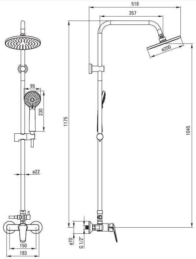 - Комплектация набора верхний душ,душевая лейка,душевой шланг,штанга