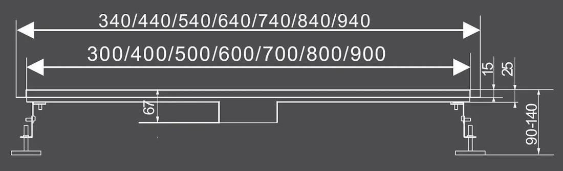 Широкий выбор доступных размеров позволяет оптимально регулировать его длину в соответствии с размерами душевой кабины или плитки и позволяет планировать место душа с большей свободой, чем в случае традиционных душевых поддонов.