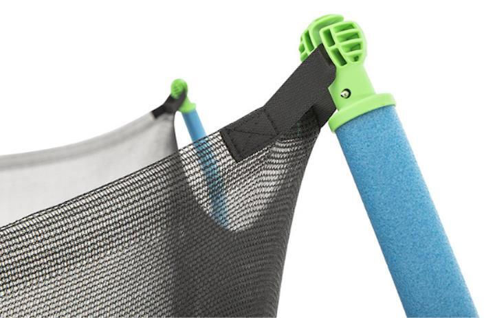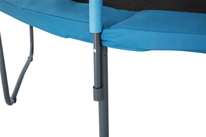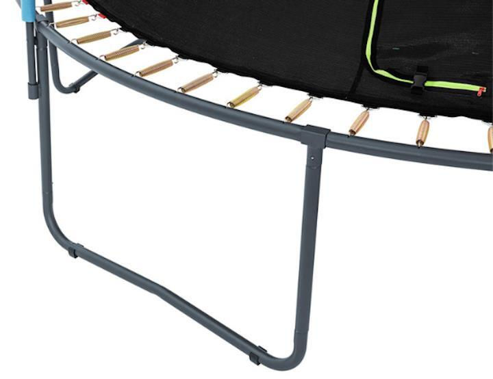 Каркас изготовлен из оцинкованной стали с порошковым покрытием, защищающим от коррозии и ржавчины. Батут оснащен стойкой к атмосферным воздействиям сеткой, прочной пружинной подкладкой и износостойким ковриком для прыжков, что обеспечивает долгий срок службы.