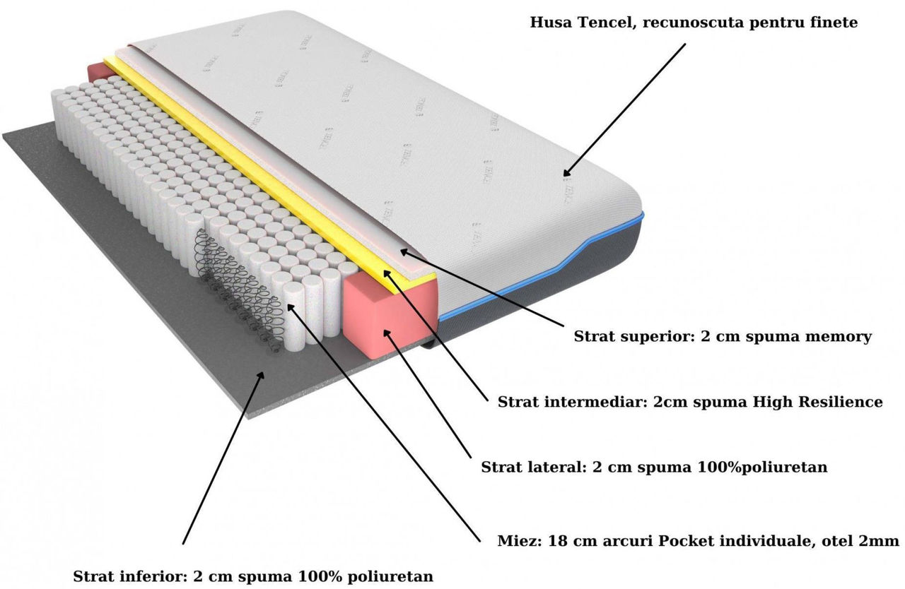 Матрас ULTRA Pocket Multilayer сочетает в себе характеристики классического пружинного матраса, т. е. мягкость и гибкость, с ортопедическими свойствами и комфортом, обеспечиваемым несколькими слоями пены с эффектом памяти. Это очень удобный матрас средней жесткости.