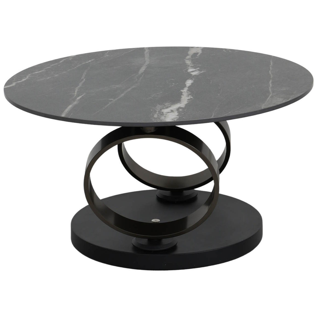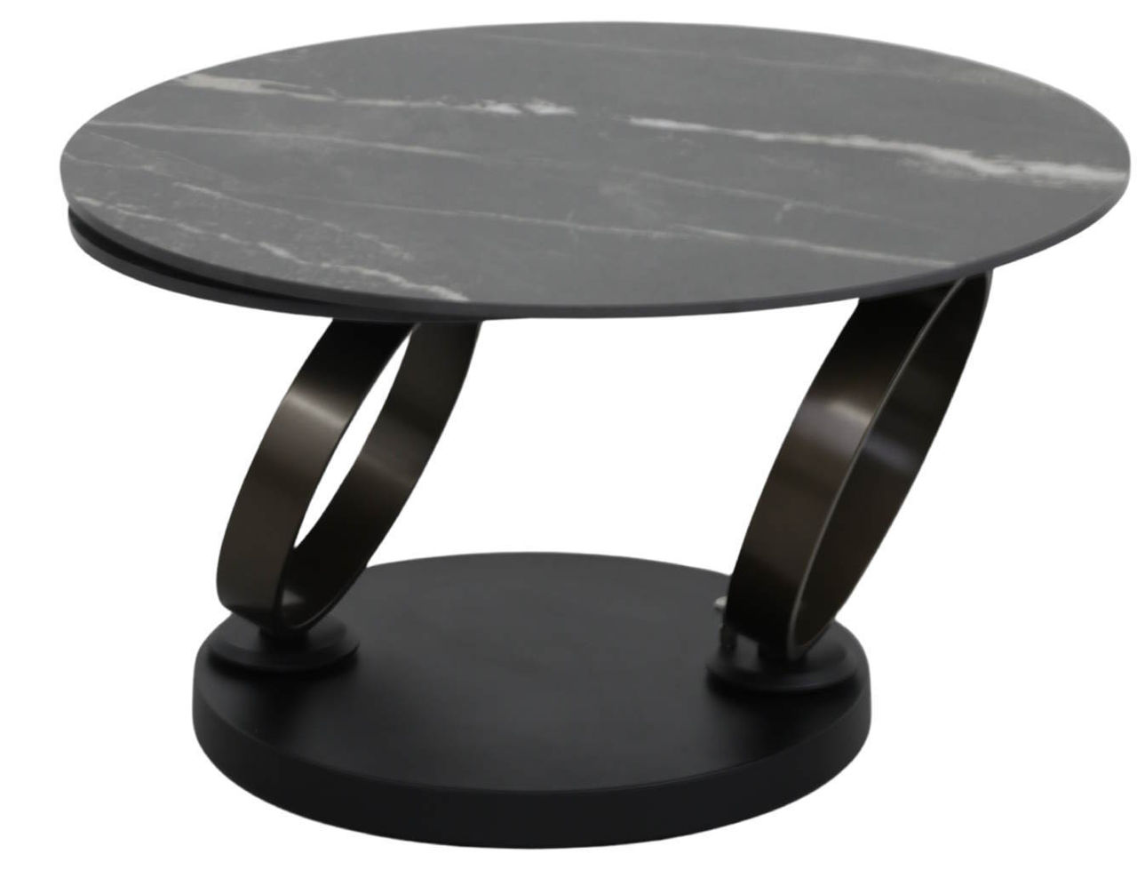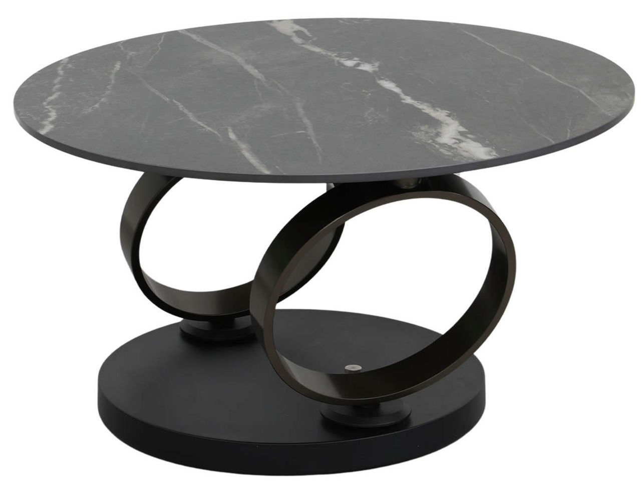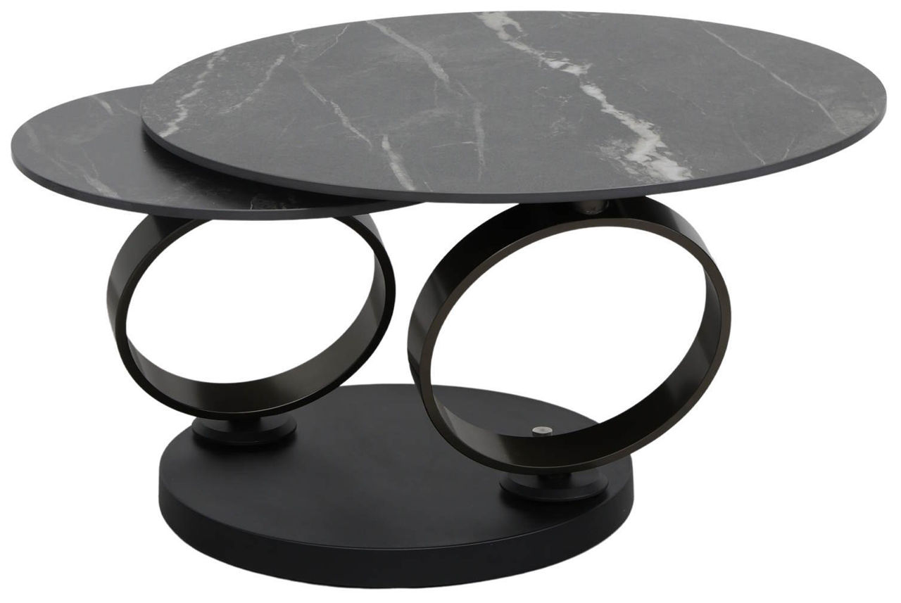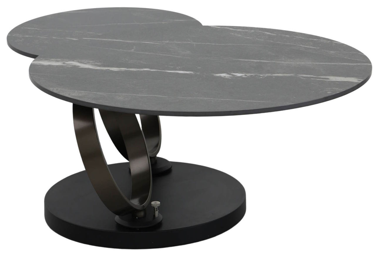 - Доп. особенности столешница выполнена из цельной керамики толщиной 12 мм, стол оснащен оригинальным поворотным механизмом, который позволяет трансформировать его в два отдельных стола простым поворотом, большой стол имеет диаметр 77 см, а маленький - 50 см
