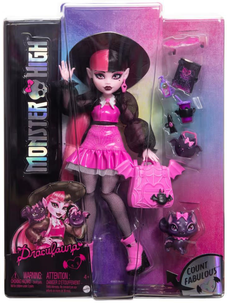Завершают образ черные сетчатые чулки и розовые экстравагантные ботинки, подчеркивающие смелый характер монстро-ученицы. Кукла имеет гибкий торс, локти, запястья и колени, что позволяет создавать множество реалистичных поз для игры.