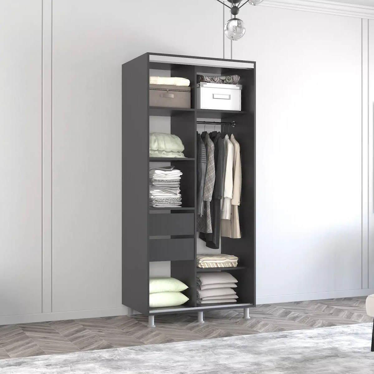 - Модель Aron cu uși glisante cu oglindă vertical (150x60x210H cm) Anthracite