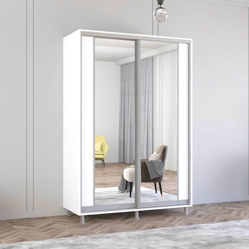 Шкаф Mobildor-Lux Арон с вертикальными зеркальными раздвижными дверцами (160x60x220H см) Brilliant White