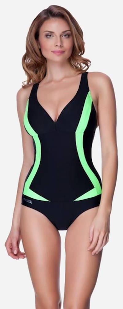 Costumul de înot are bretele late care se încrucișează la spate, precum și cupe detașabile și o căptușeală strânsă în față. Toate acestea permit costumului de înot să se așeze perfect pe corp, oferă o utilizare confortabilă și o potrivire excelentă.