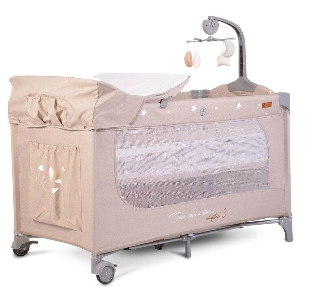 Tip: ţarc-pătuc / Mecanismul de pliere: clapetă / Capacitate maximă de cântărire, kg: 25 / Material: metal / plasa / stofă / plastic