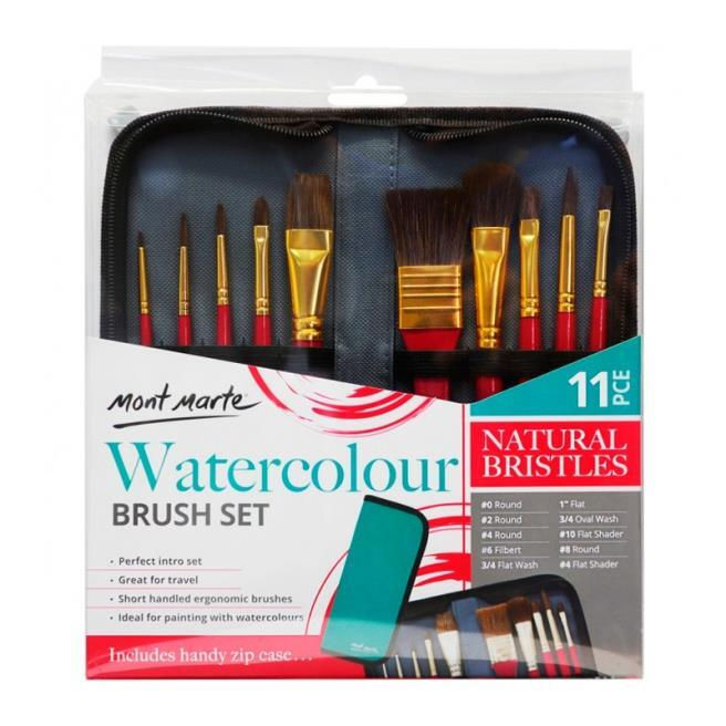 - Комплектация набора 11 кисточек, пенал