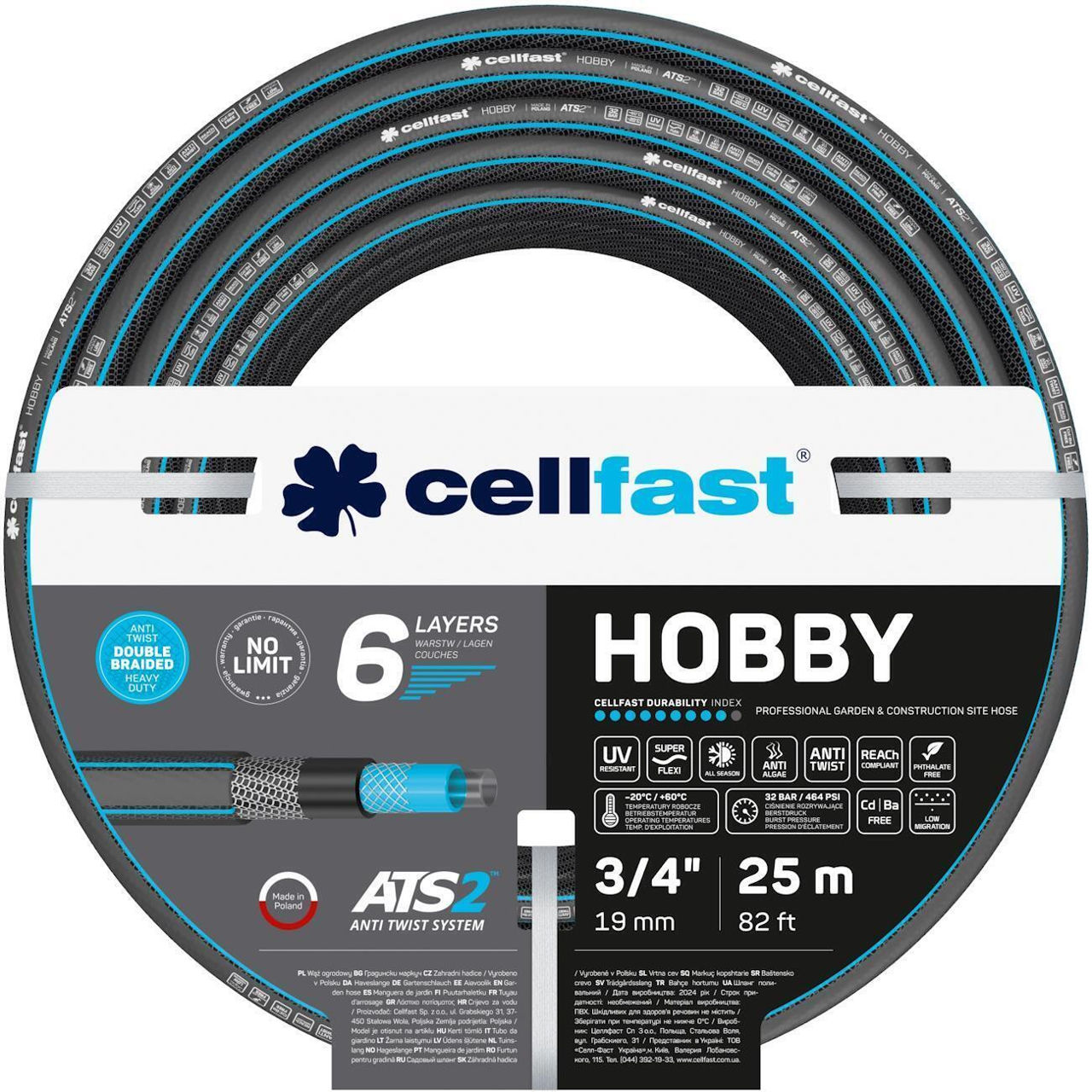 Шланг Cellfast 34209 Hobby ATS2 D 3/4" (18-22 мм) 16-220 Д = 25 м, садовая