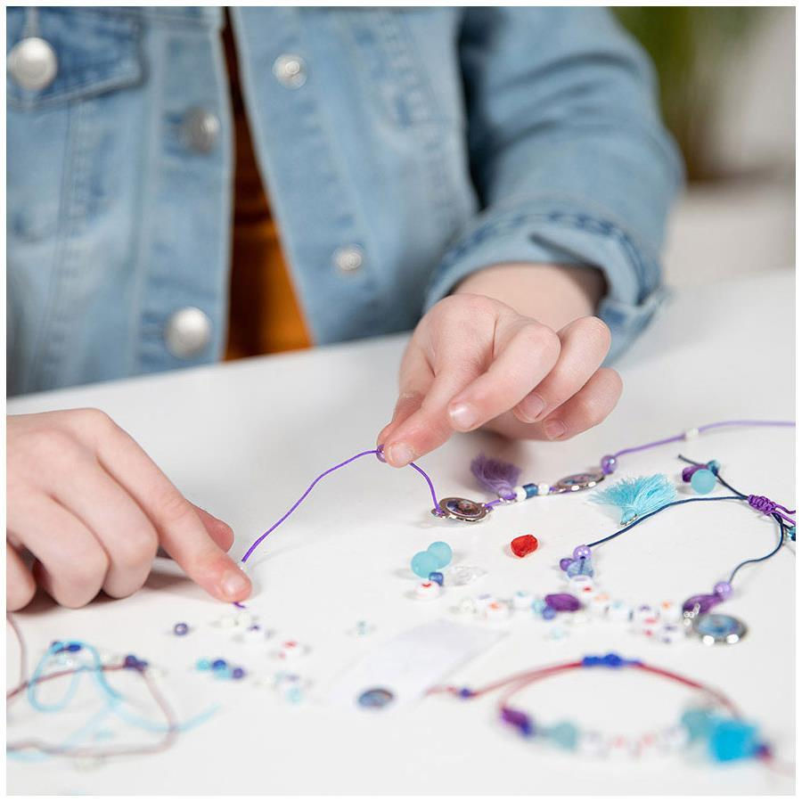С этим набором ты сможешь самостоятельно сделать 2 браслета с шармами Эльзы и Анны. Выбери свой любимый брелок и создай собственное украшение! Набор также можно использовать для создания браслета дружбы для своей лучшей подруги.