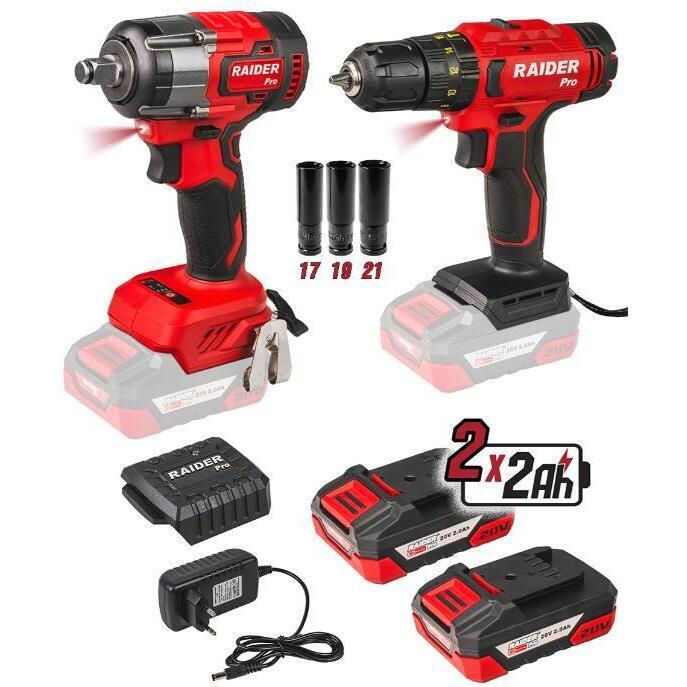 Тип: набор электроинструментов / Комплектация: дрель-шуруповёрт;гайковёрт / Тип питания: аккумулятор / Количество аккумуляторов в комплекте: 2