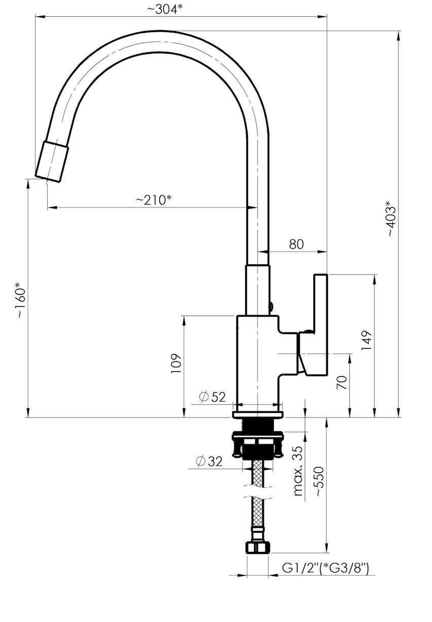 - Длина излива, мм 210